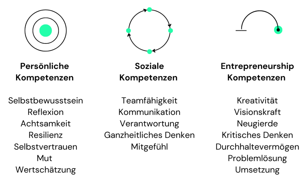 Unsere Auswahl an Zukunftskompetenzen, die wir für die Zielgruppe als am relevantesten identifiziert haben: