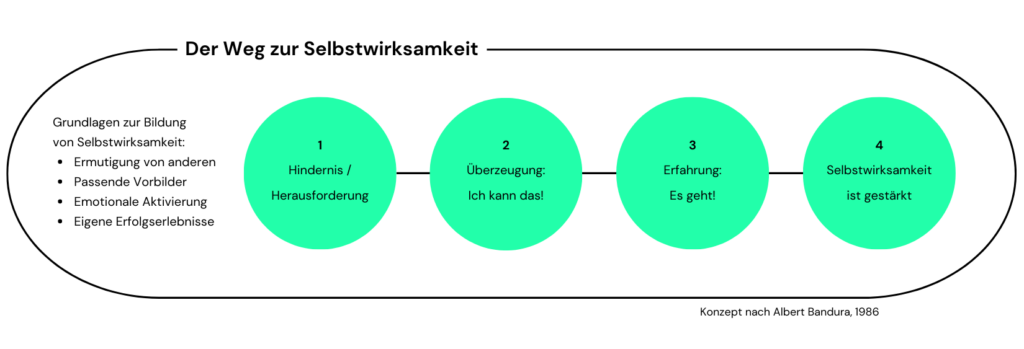 Selbstwirksamkeit ist die Fähigkeit, durch Rückgriff auf die eigenen Kompetenzen ein gewünschtes Ziel zu erreichen bzw. eine Handlung ausführen zu können: „Ich kann aus eigener Kraft etwas bewirken!“